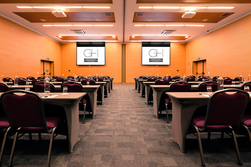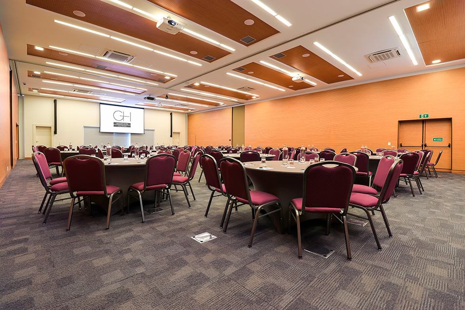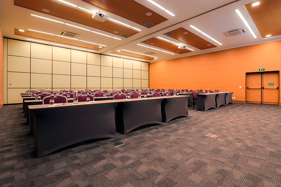 Possibilidade de uso completo para até 210 pessoas ou modular em três configurações.