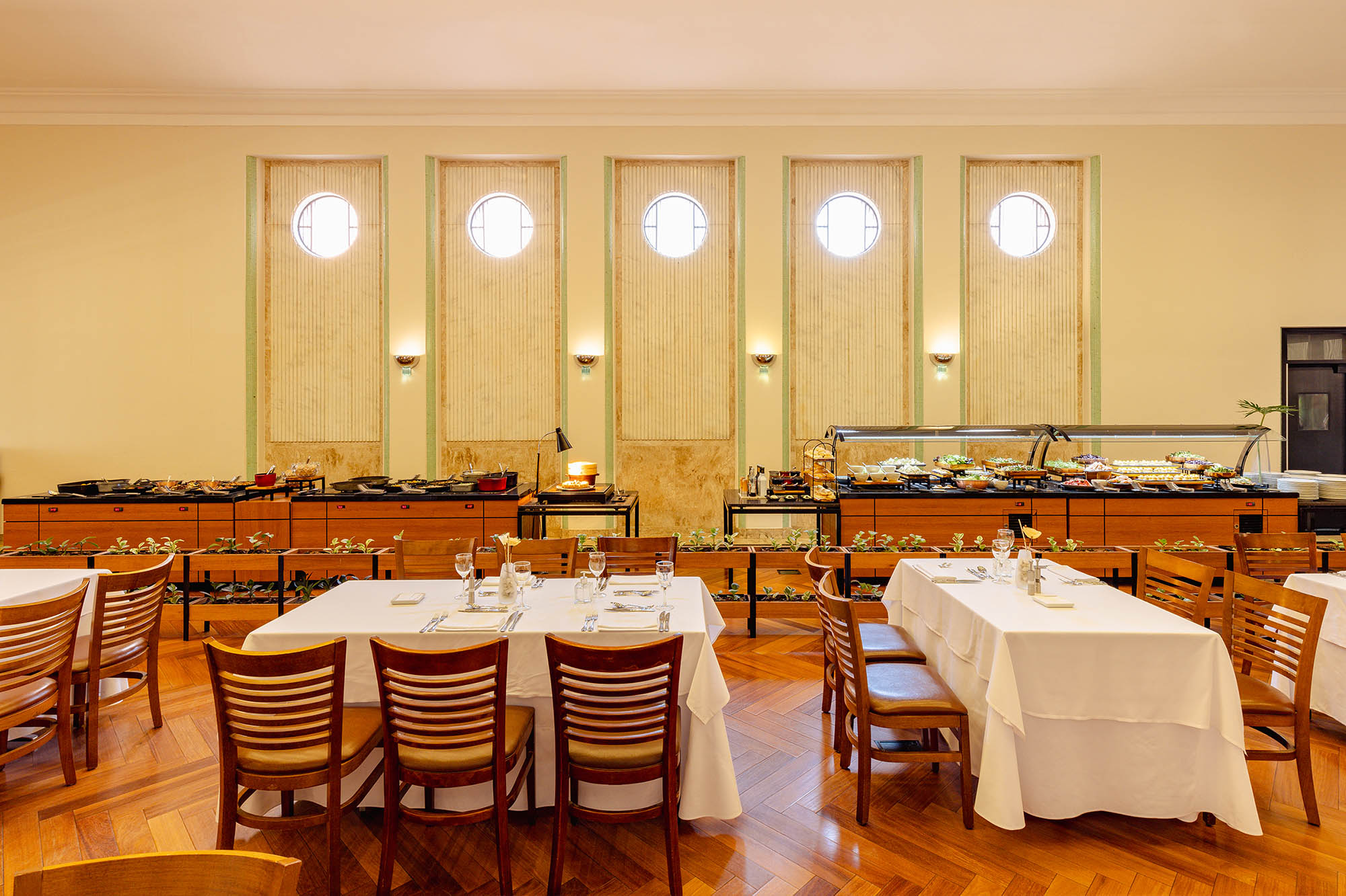 No Restaurante Grande Hotel, a variedade e a apresentação das receitas são essenciais para composição do buffet, com opções e combinações para todos os gostos. Aos sábados, é servida a tradicional feijoada ao som de chorinho ao vivo.